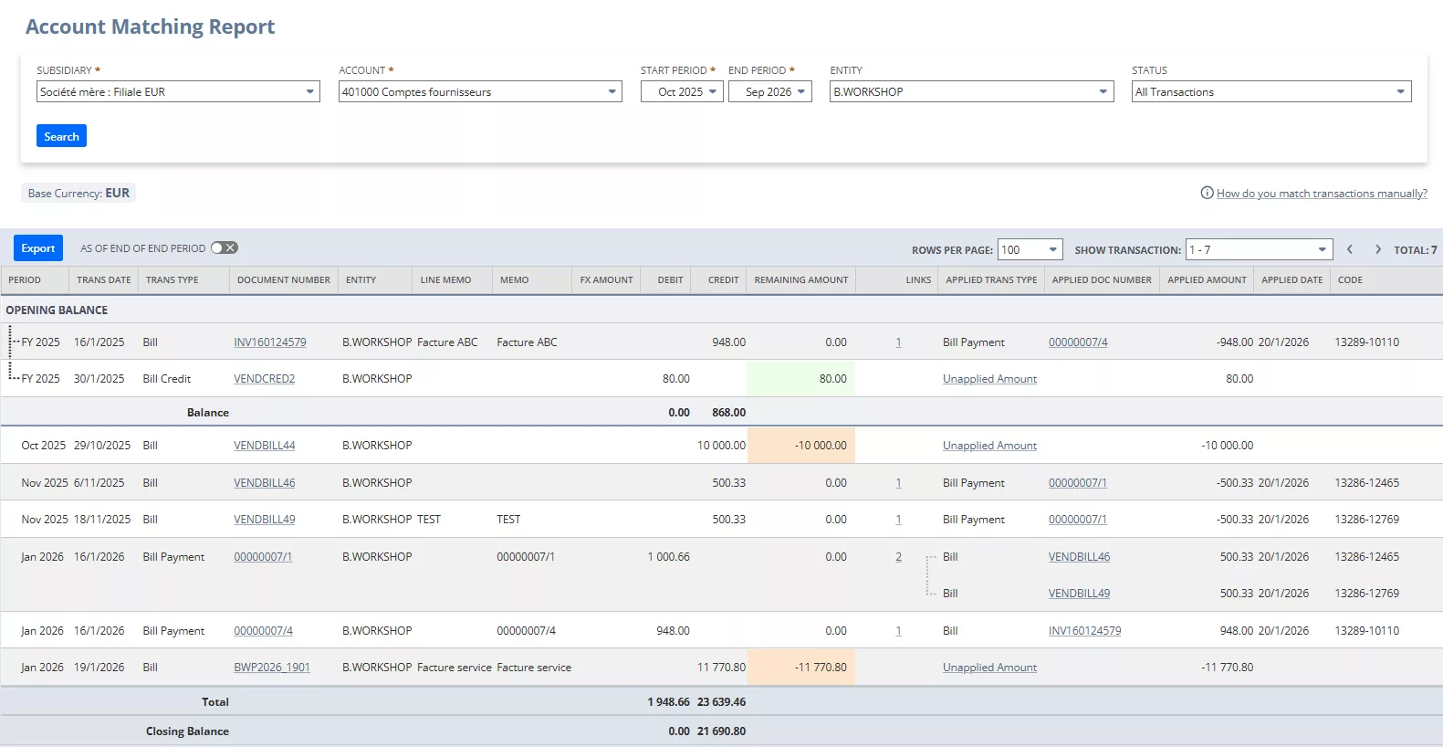 FAQ : le lettrage NetSuite avec Account Matching Report